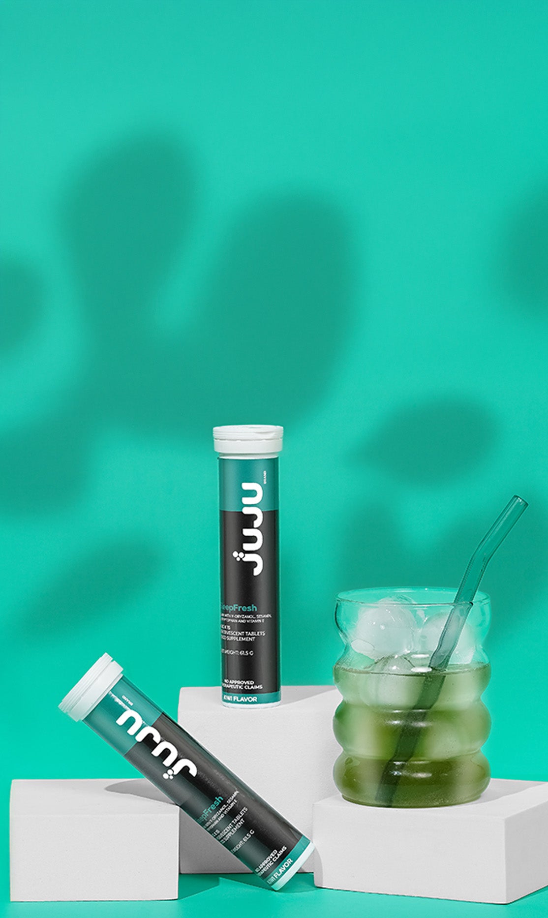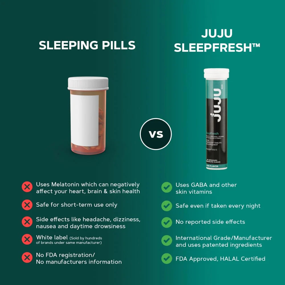 Introducing JUJU SLEEPFRESH: Your fizzy bedtime buddy for the best beauty sleep ever.